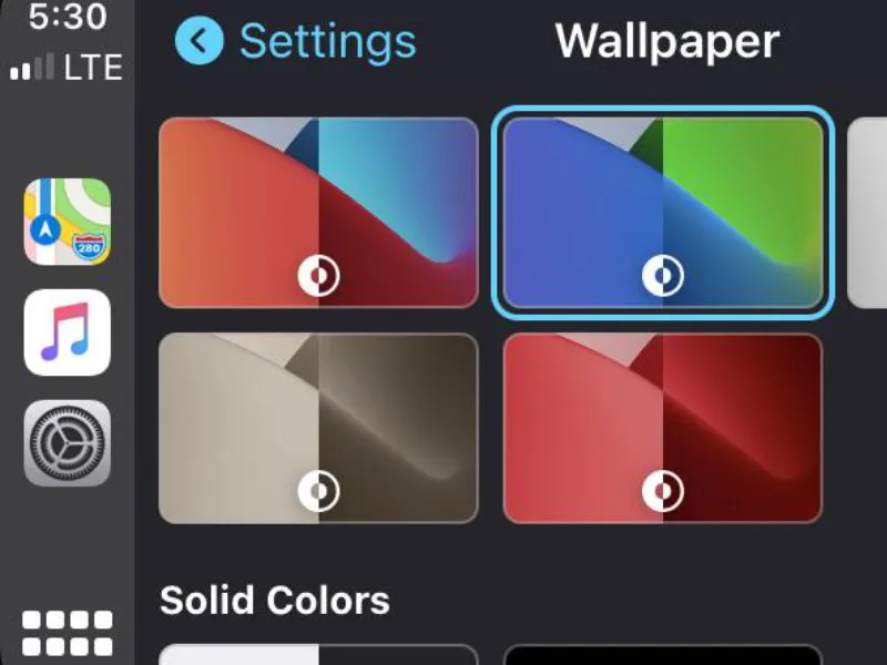 Bạn hãy mở ứng dụng Cài đặt (Settings) trên màn hình CarPlay. Chọn mục Hình nền (Wallpaper). Sau đó, chọn một hình nền bạn muốn sử dụng từ các tùy chọn có sẵn. Cuối cùng, nhấn Đặt (Set) để áp dụng.
