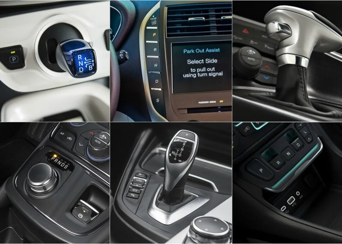 Các loại cần số ô tô số tự động. Các ký hiệu cơ bản là P, R, N, D. [Ảnh liên quan đến cách sang số xe ô tô]