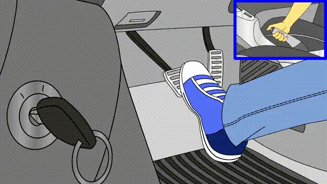 Khởi động xe sau khi đã đạp chân phanh. Đây là quy tắc an toàn cơ bản. [Ảnh liên quan đến cách sang số xe ô tô]