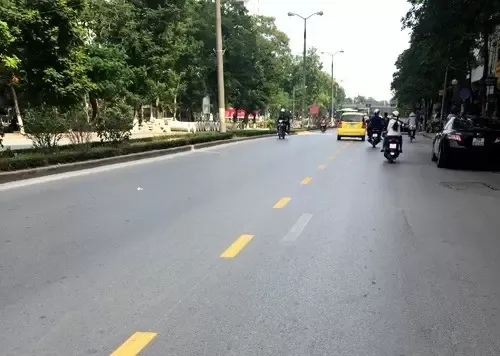 Vạch 1.2 màu vàng nét liền cấm mọi hành vi đè vạch hoặc lấn sang làn đường đối diện.