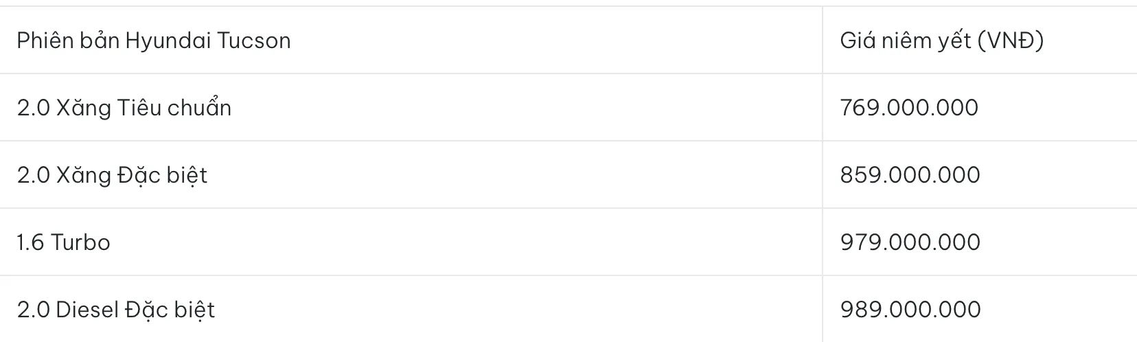 Trong tầm giá xe ô tô 1 tỷ, Hyundai Tucson nổi bật với thiết kế phá cách Parametric Dynamics. Hệ dẫn động HTRAC trên bản 1.6 Turbo giúp xe vận hành ổn định trên nhiều địa hình khác nhau. Khoang nội thất hiện đại với cần số dạng nút bấm và màn hình đôi 10.25 inch. Tuy nhiên, sau một thời gian sử dụng, độ rung nhẹ của động cơ dầu 2.0L có thể là điểm trừ đối với những khách hàng khó tính.