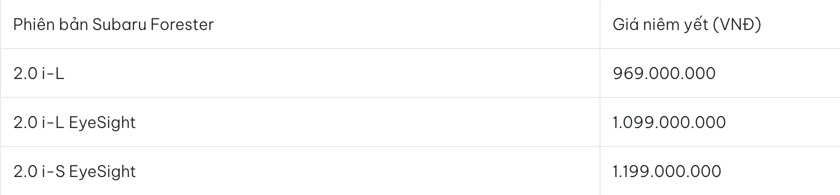 Subaru Forester không dành cho số đông do thiết kế có phần thực dụng, thiếu sự bóng bẩy. Nhưng về mặt kỹ thuật, đây là mẫu xe ô tô 1 tỷ sở hữu hệ dẫn động 4 bánh toàn thời gian đối xứng (S-AWD) và động cơ Boxer nằm ngang giúp hạ thấp trọng tâm xe, mang lại độ bám đường kinh ngạc. Hệ thống an toàn EyeSight 4.0 là một trong những hệ thống hỗ trợ lái xe tin cậy nhất hiện nay trong mọi điều kiện thời tiết.