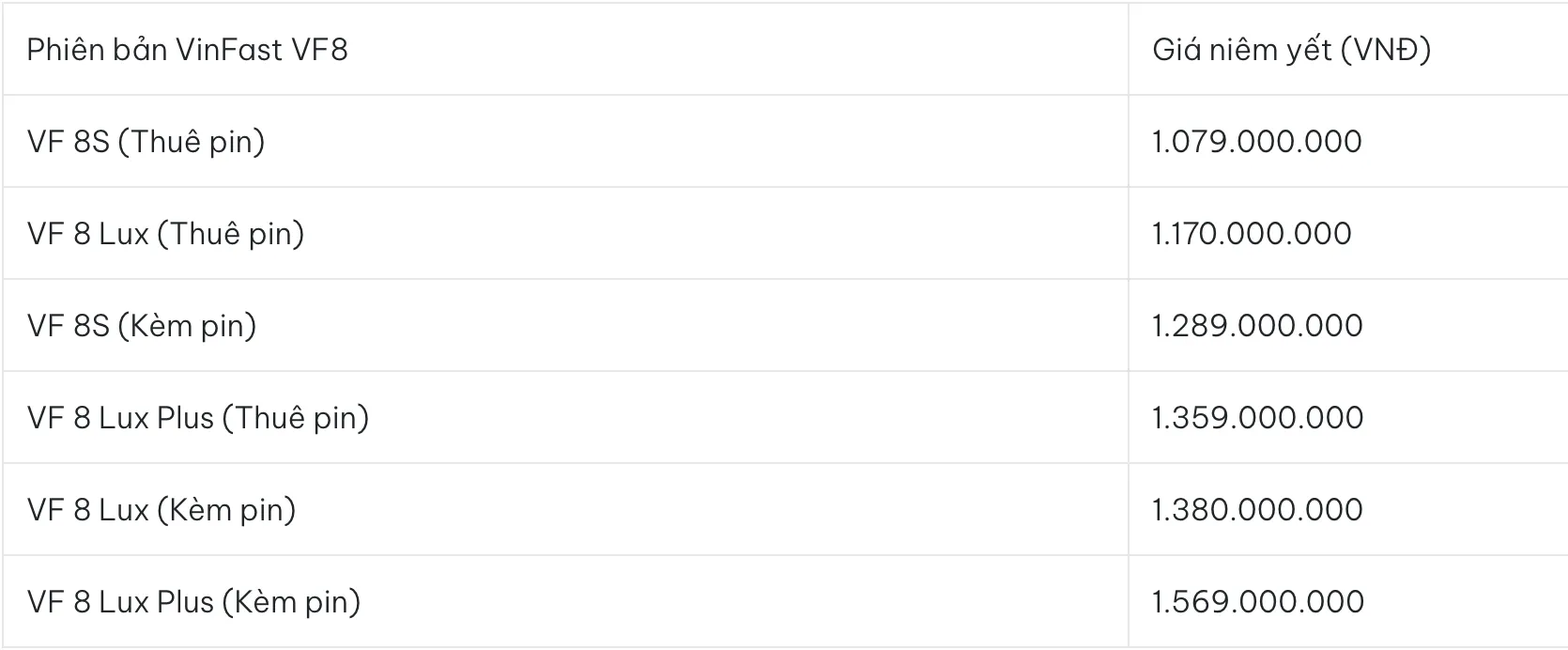 VinFast VF8 là mẫu xe ô tô 1 tỷ thuần điện đáng chú ý nhất hiện nay. Với công suất lên tới 402 mã lực (bản Plus), VF8 mang lại khả năng tăng tốc như siêu xe thể thao. Chi phí sạc điện rẻ hơn nhiều so với đổ xăng là lợi thế lớn cho người chạy xe nhiều. Tuy nhiên, khách hàng cần cân nhắc kỹ về hạ tầng trạm sạc tại khu vực mình sinh sống và lộ trình di chuyển thường xuyên.