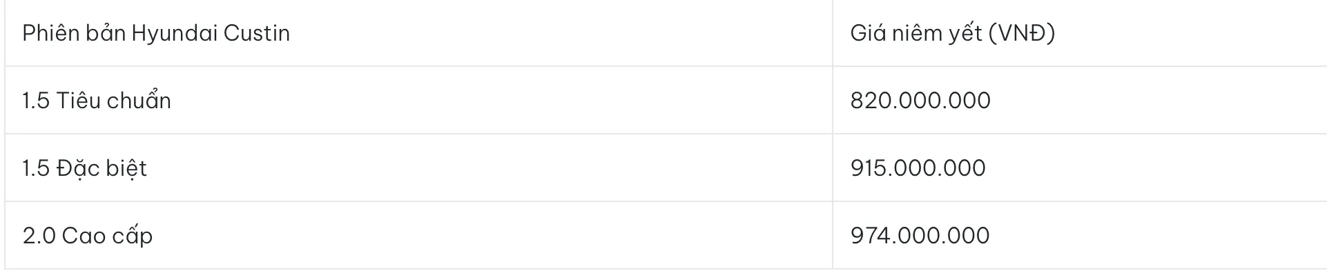 Hyundai Custin được mệnh danh là “tiểu Carnival” với thiết kế cửa trượt điện cực kỳ tiện lợi cho gia đình có người già và trẻ nhỏ. Hàng ghế thứ hai kiểu Captain mang lại cảm giác hưởng thụ cao cấp. Với ngân sách dành cho xe ô tô 1 tỷ, bạn hoàn toàn có thể sở hữu phiên bản động cơ 2.0L mạnh mẽ. Nhược điểm của Custin là khoảng sáng gầm thấp, chỉ khoảng 170mm, cần lưu ý khi đi vào đường ngập nước hoặc leo lề.