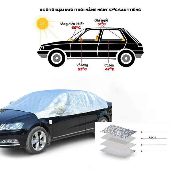 Theo các nghiên cứu, loại bạt này có thể giúp giảm nhiệt độ cho ô tô từ 20 – 30 độ C. Đây là con số ấn tượng, đặc biệt cần thiết cho những chiếc xe ô tô SUV 5 chỗ màu tối. Xe màu đen hấp thụ nhiệt mạnh hơn, nên việc sử dụng bạt là giải pháp bảo vệ cực kỳ hiệu quả.