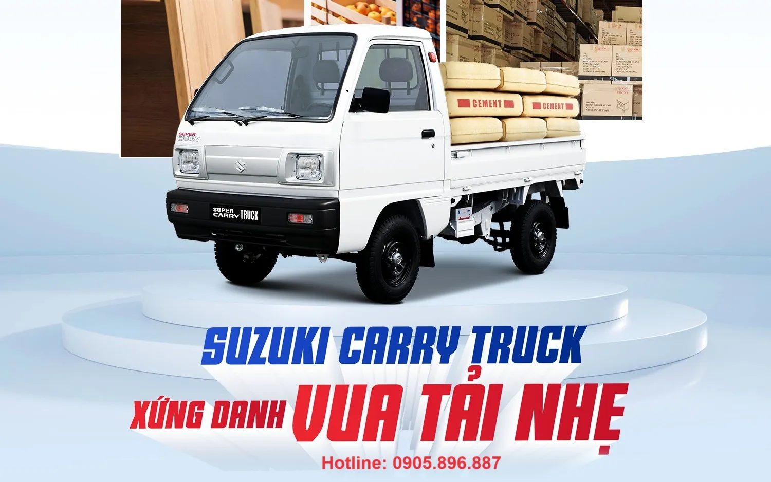 Suzuki Việt Nam phân phối 2 model xe tải dưới 1 tấn tiêu chuẩn Nhật Bản: Carry Truck với tải trọng 500-550kg (thùng dài 2.1m) và Carry Pro tải trọng 750-800kg (thùng dài 2.6m). Cả 2 dòng đều sử dụng động cơ xăng, phù hợp di chuyển trong khu vực cấm xe tải diesel và các tuyến đường nội thị có hạn chế tải trọng.
